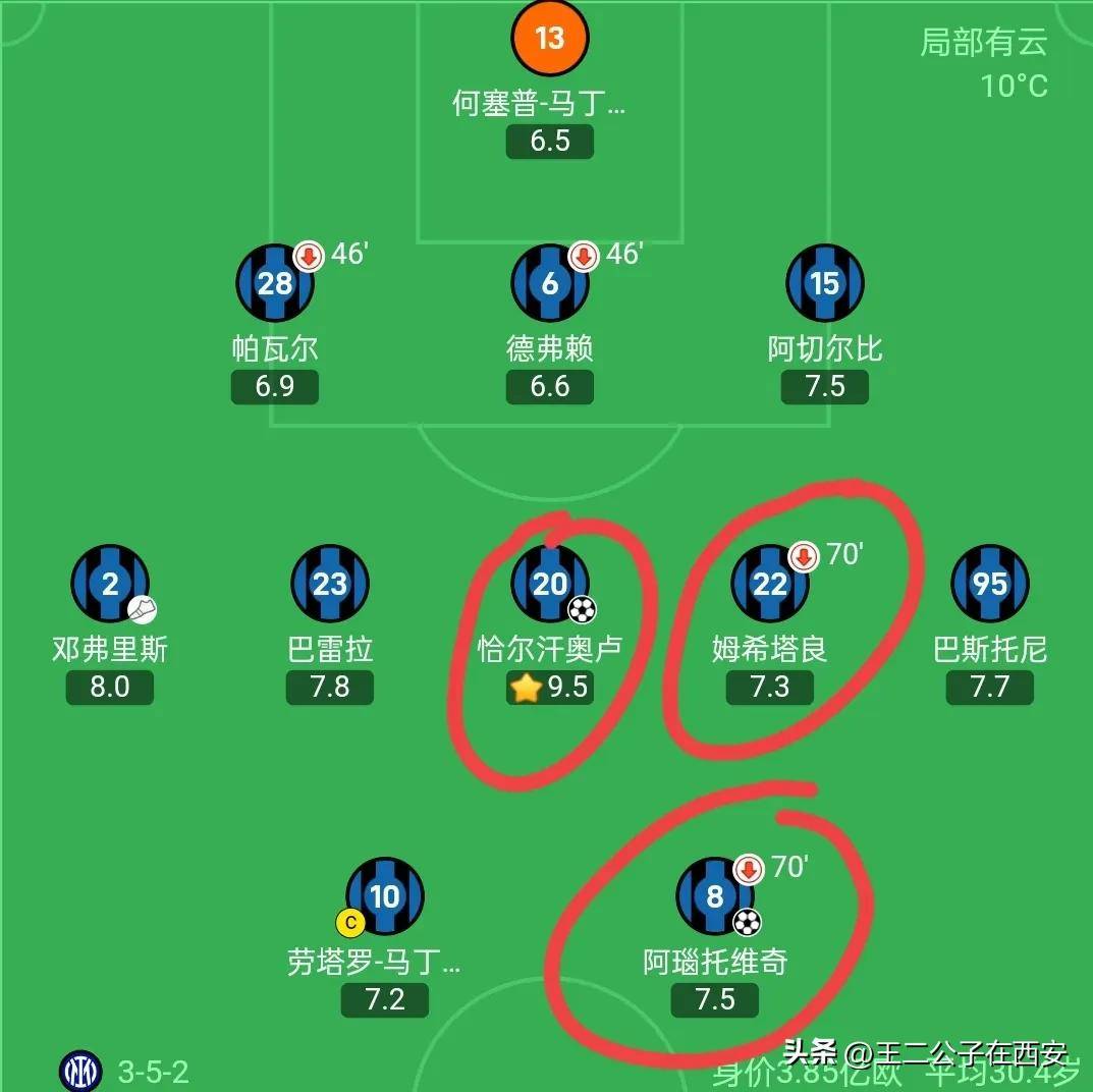 上半场,这个阵容显得活力不足,休息后的驴二姆希塔良仍然没有找回自己赛季中的状态,他和巴斯托尼,阿切尔比组成的左路,显得运动力不够。第一个进球就来自于中场失误后左路被对手轻松击穿。莫塔这个选手打国米还是挺有心得。本场比赛则是助攻梅开二度。